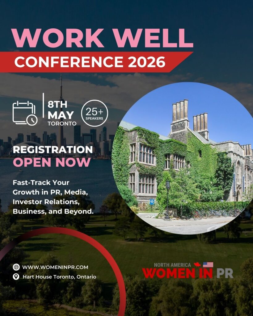 The Women in PR North America WorkWell Conference in Toronto on May 8, 2026, brings together leaders in public relations, investor relations, communications, media, marketing, and business for a day of connection and inspiration during Women’s Health Month.